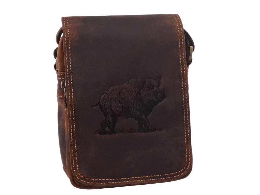 Pánska poľovnícka kožená taška crossbody motív Diviak - Je ideálnym spoločníkom na posed, do lesa, ale aj na bežné nosenie.