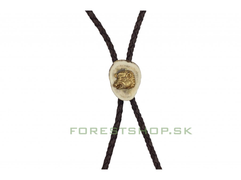 Poľovnícka oválna parohová bolla - parohový rez s motívom Diviak hlava. Kvalitná kožená pletená šnúrka.