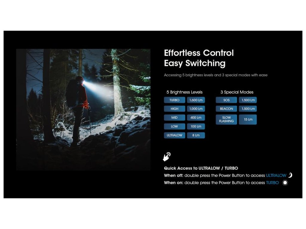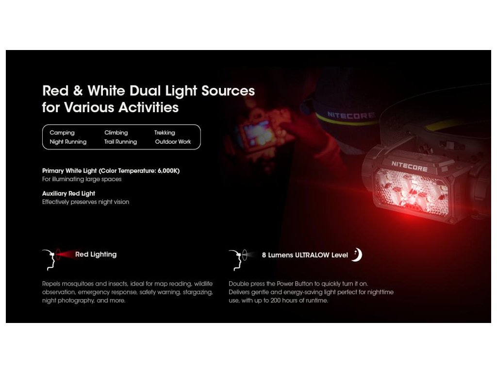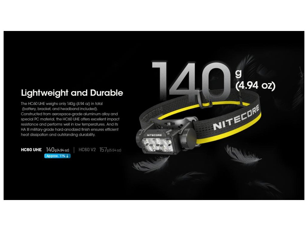 Čelovka NITECORE HC60 UHE je model navrhnutý pre poľovníkov, ktorí potrebujú nekompromisné osvetlenie pri nočných dohľadávkach alebo presunoch na postriežku. Vďaka kombinácii širokého kužeľa a dlhého dosvitu pokryje celý zorný pole bez skreslenia okolitého prostredia.