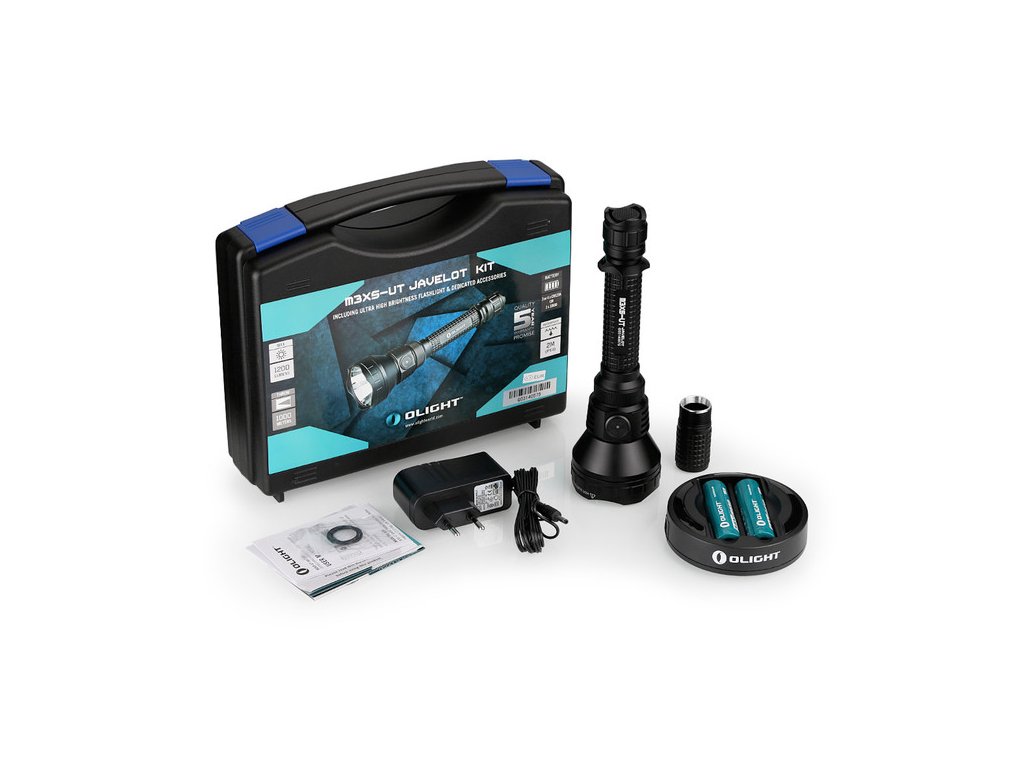 Svietidlo OLIGHT M3XS-UT Javelot ponúka extrémny dosvit až 1000 metrov. Svetelný tok až 1200 ANSI lumenov je vyžarovaný diódou Cree XP-L.Kombinácia tejto špeciálne upravené diódy a veľkého hliníkového reflektora robí z tohto svietidla ozajstného kráľa dosvitu. Voliť možno štyri svetelnérežimy s výdržou až 360 hodín, pričom elektronika udržiava konštantnú intenzitu svetla. Telo svietidla je odolné voči pádom z výšky 1 m a vodotesné do hĺbky 2 m. Na napájanie je možné použiť dva li-ion akumulátor 18650, alebo 3 jednorázové batérie CR123A. Pri plnom výkone 1200 lúmenov je výdrž svietidla 2,1 hodín.